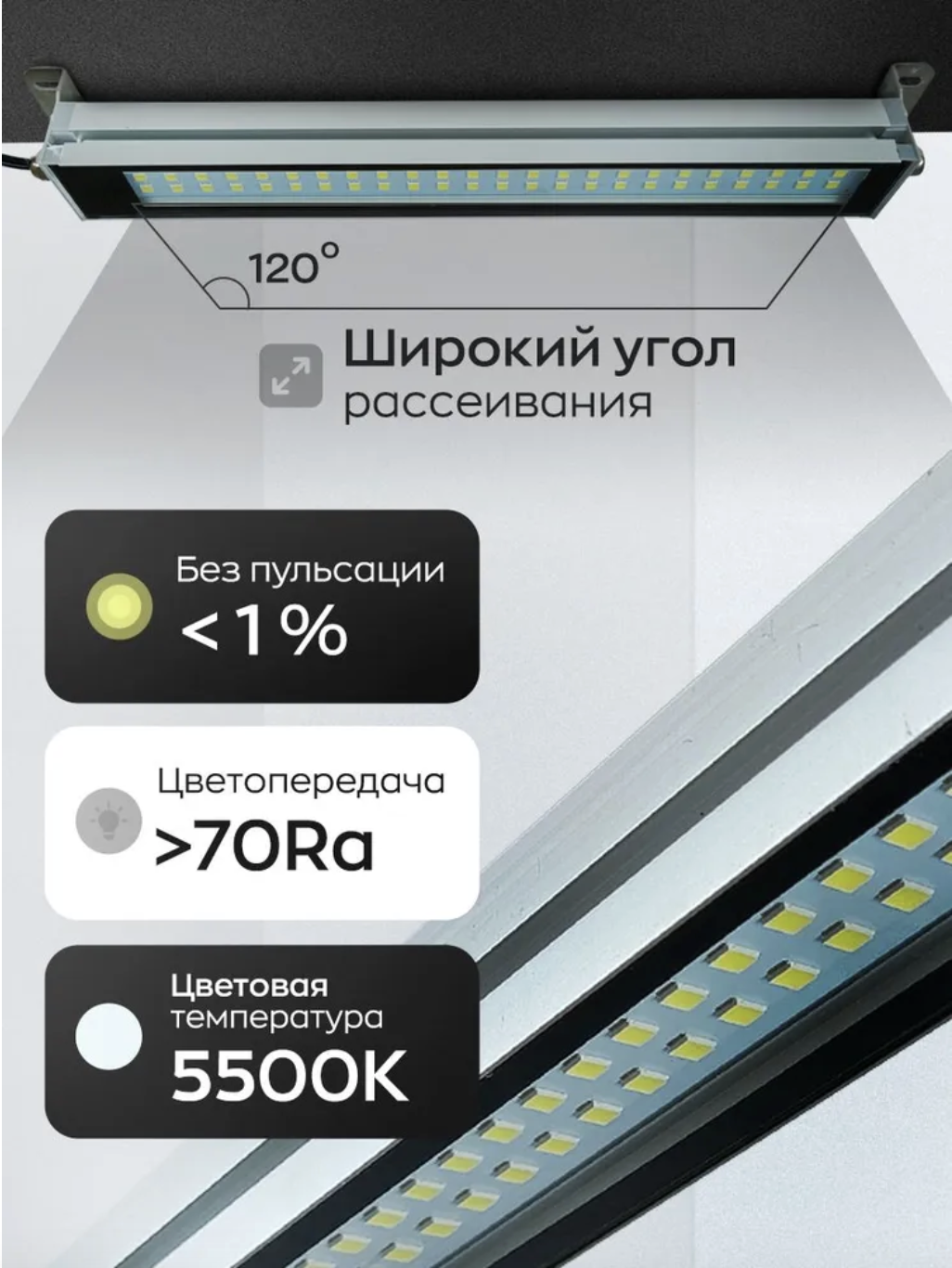 - Коэффициент пульсаций светового потока - <5%